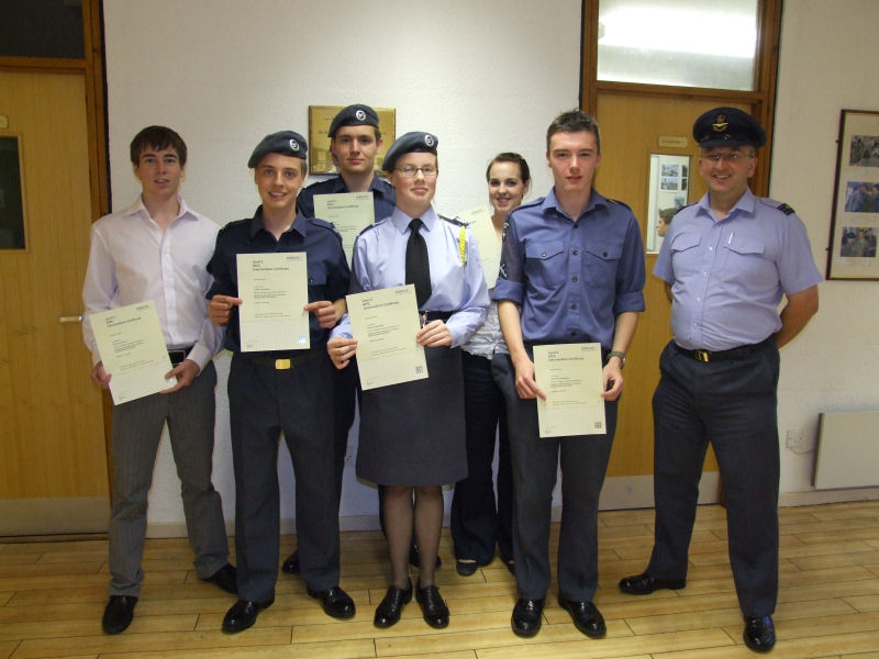 Sqn Ldr Sean Harrison was invited to present a BTEC Certificate in Aviation Studies to six cadets, Sgt Fennell, Cpl Whitehead, Cpl Silvester, Flt Sgt McKenzie, Flt Sgt Dick and Cdt Henderson.