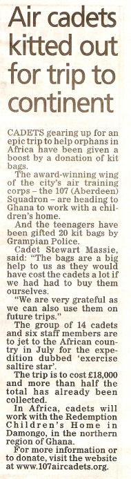 The Evening Express included an article today about our expedition to Ghana. Click here for more information.