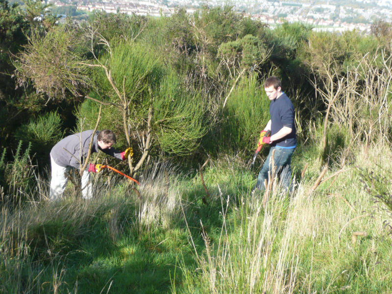 Today six cadets joined members of Aberdeen University's "Dirty Weekenders" group and other volunteers to help clear gorse and broom at Kincorth Hill Local Nature Reserve. The event was organised by the Aberdeen City Council Ranger Service who provided gloves and tools as well as hot drinks and biscuits.