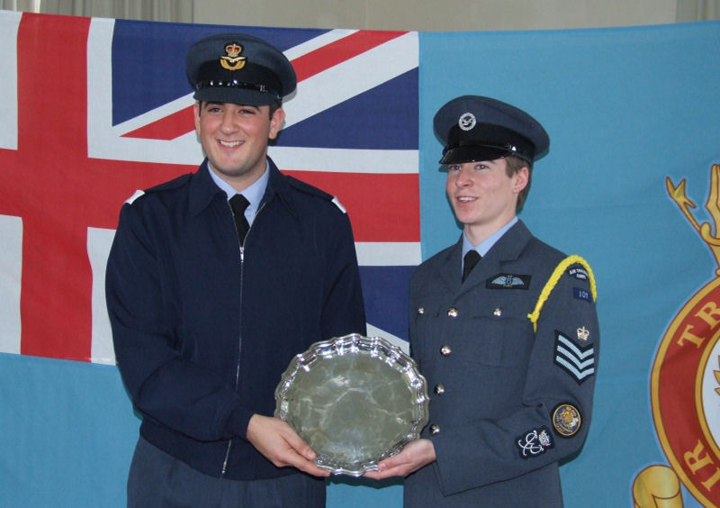 Gp Capt Monkman also had a surprise for one lucky cadet. Sgt Nick Fennell (holding trophy), the Best Male Cadet in the Wing for 2007 is to be given the chance of a lifetime flight in a Hawk, the aircraft flown by the Red Arrows.